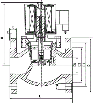 本閥為分步動作直接先導式電磁閥,可根據(jù)斷電時所處開、關狀態(tài)的不同,可分為常閉式電磁閥和常開式電磁閥。常閉電磁閥,線圈通電后,銜鐵在電磁力作用下先帶動副閥閥塞提起,主閥閥杯上的流體經(jīng)副閥流走,減少了作用在主閥閥杯上的壓力,當主閥閥杯上的壓力減少到一定值時,銜鐵帶動主閥閥杯,并利用壓差而使主閥閥杯開啟,介質流通。線圈斷電后,電磁力消失,銜鐵因自重下落復位。同時依靠介質壓力,主副閥得以緊密關閉。常開電磁閥,線圈通電后由于吸力作用,動鐵芯下移,把副閥閥塞壓下,副閥關閉,主閥閥杯內壓力上升,當壓力升到一定值時,主閥閥杯的上下壓差一樣,由于電磁力作用,動鐵芯推動主閥閥杯下,壓緊主閥閥座,閥門關閉。線圈斷電時,電磁吸力為零,副閥閥塞和動鐵芯由于彈簧作用向上提起,副閥打開,主閥閥杯上的流體經(jīng)副閥流走,減少了作用在主閥閥杯上的壓力,當主閥閥杯上的壓力減少到一定值時,利用壓差把主閥閥杯推起,主閥打開,介質流通