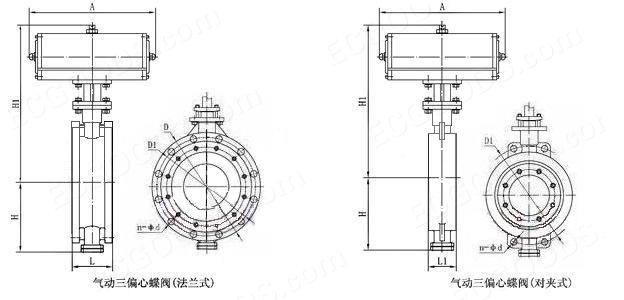 氣動(dòng)三偏心蝶閥 主要外形尺寸