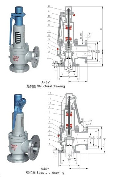 A44Y full-open safety valve with wrench spring is suitable for air, oil and other media equipment or pipeline with working temperature < 300, as overpressure protection device.