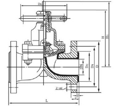 DN(mm) | NPS(inch) | L | D | D1 | D2 | f | b | Z-фd | d0 | H | H1 | WT(kg) |