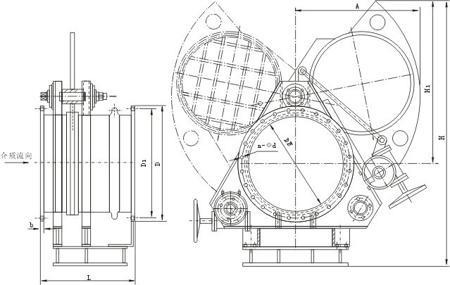 F343CX蝸輪扇形眼鏡閥又稱蝸輪扇形盲板閥,蝸輪翻板閥,蝸輪扇形閥,由左閥體、中閥體、右閥體、扇形盲板、絲桿螺母、不銹鋼補(bǔ)償器、兩個蝸輪傳動機(jī)構(gòu)等組成。它是通過三根絲桿連成一體,并把三個閥體分別固定在底座上,構(gòu)成一個剛性結(jié)構(gòu)體。中閥體與右閥體用不銹鋼膨脹管連接,左、中閥體分別用三根兩端帶左右梯形螺紋的絲桿連接,將三根絲桿同時作正向(或反向)旋轉(zhuǎn),則左、中兩閥體得到壓緊(或分離)。三根絲桿中上面一根絲杠中間裝有盲板,盲板繞該軸心旋轉(zhuǎn)。下面兩根絲桿在同樣的部位上安裝有盲板的定位塊,盲板旋轉(zhuǎn)時可以防止盲板漂移,避免密封圈擦傷,其中一根絲桿上裝有蝸輪傳動機(jī)構(gòu),實現(xiàn)松開夾緊閥體的目的。